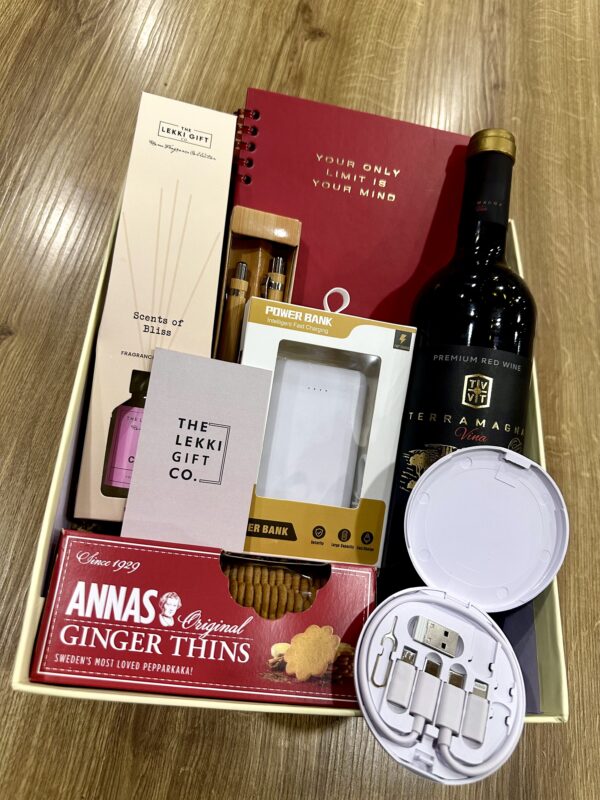- Pack of biscuits and bottle of red wine for indulgence and relaxation