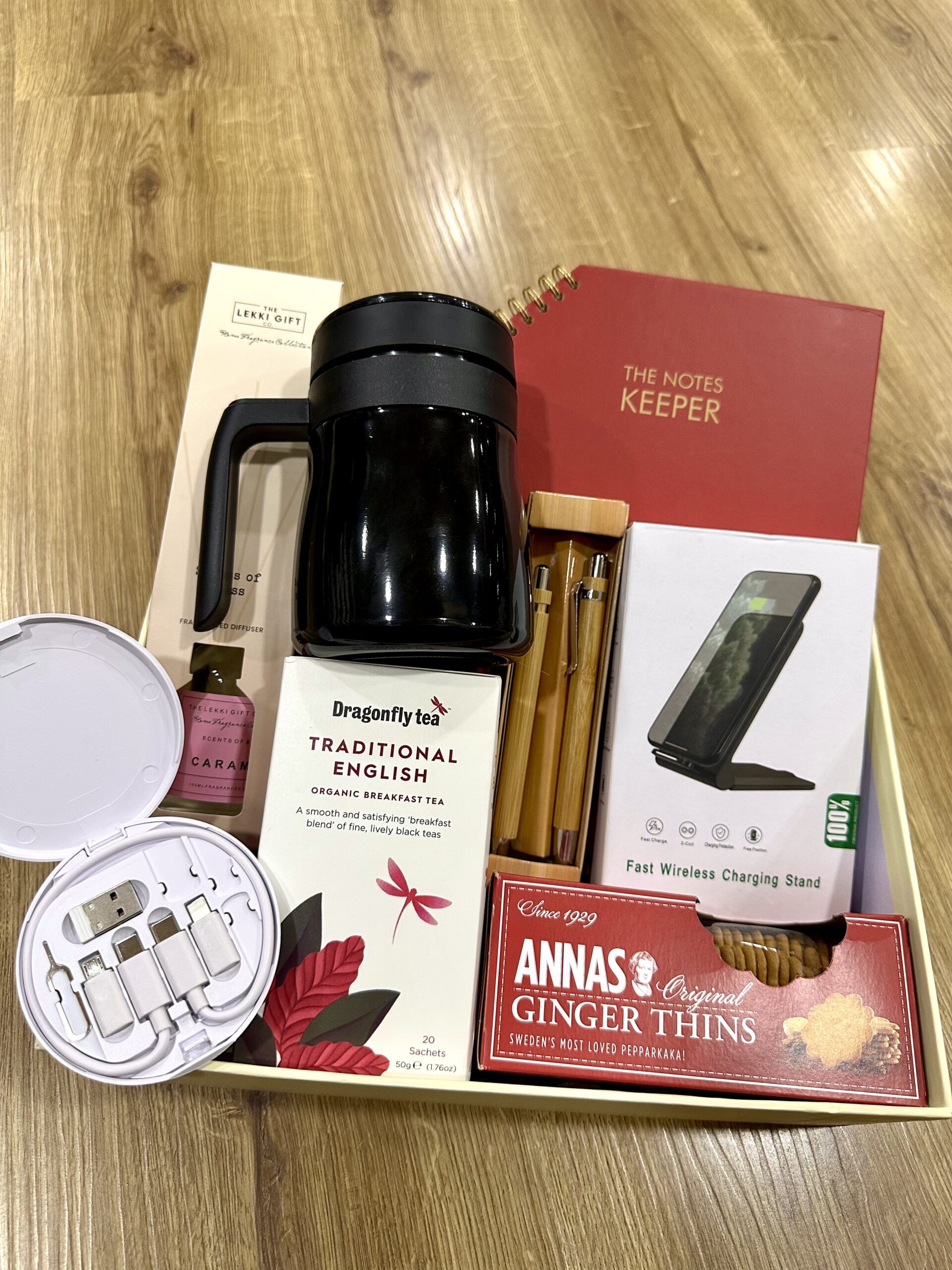 Executive Harmony Lifestyle Box is a thoughtfully curated gift set designed for modern professionals, combining productivity, comfort, and everyday luxury to support a balanced and inspired workday experience.