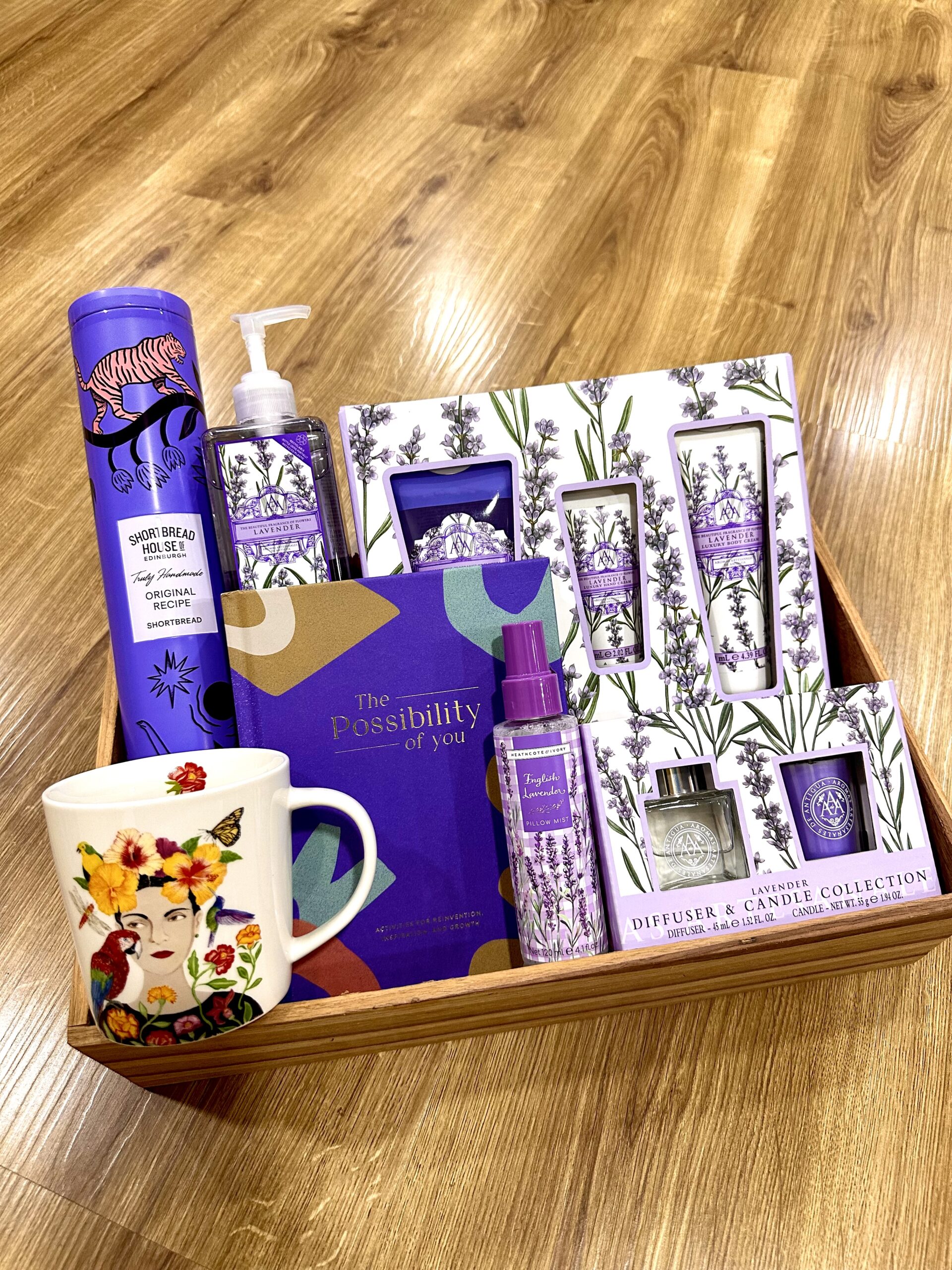 - Lavender hand wash, shower gel, hand cream, and body balm for self-care